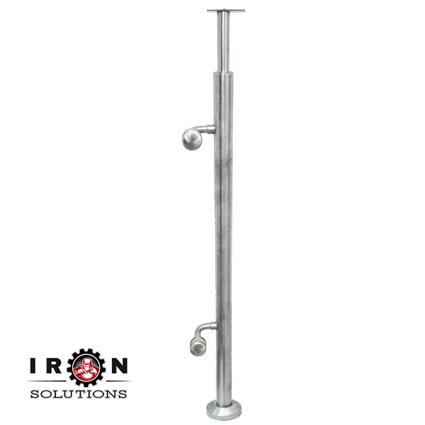 Post Ø42 mm side 1,5 mm, h-1050 mm for polish n/a steel underglass handrail AISI 304 (docking straight handrail holder, glass attachment КСН-03/П 2 pcs., flange stainless steel Ø96 mm, decorative cup n/a steel Ø 96 mm)