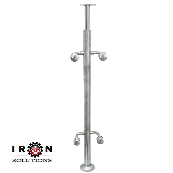 Post Ø42 mm side 1,5 mm, h-1050 mm for polish n/a steel underglass handrail AISI 304 (docking straight handrail holder, glass attachment КСН-03/П 4 pcs., flange stainless steel Ø96 mm, decorative cup n/a steel Ø 96 mm)