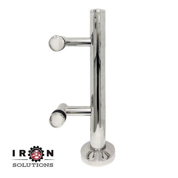 Post Ø42 mm side 1,5 mm, h-400 mm for polish n/a steel underglass handrail AISI 304 (glass attachment КСН-03/П 2 pcs., plug Ø42 mm, flange stainless steel Ø96 mm, decorative cup n/a steel Ø96 mm)